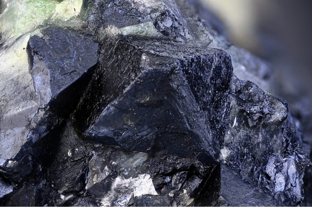 Chromite naturally forms solid solutions with minerals such as magnesiochromite (MgCr₂O₄), where magnesium can partially replace iron. It may also contain aluminum substitutions, forming hercynite (FeAl₂O₄), which contributes to its complex and valuable mineral composition.